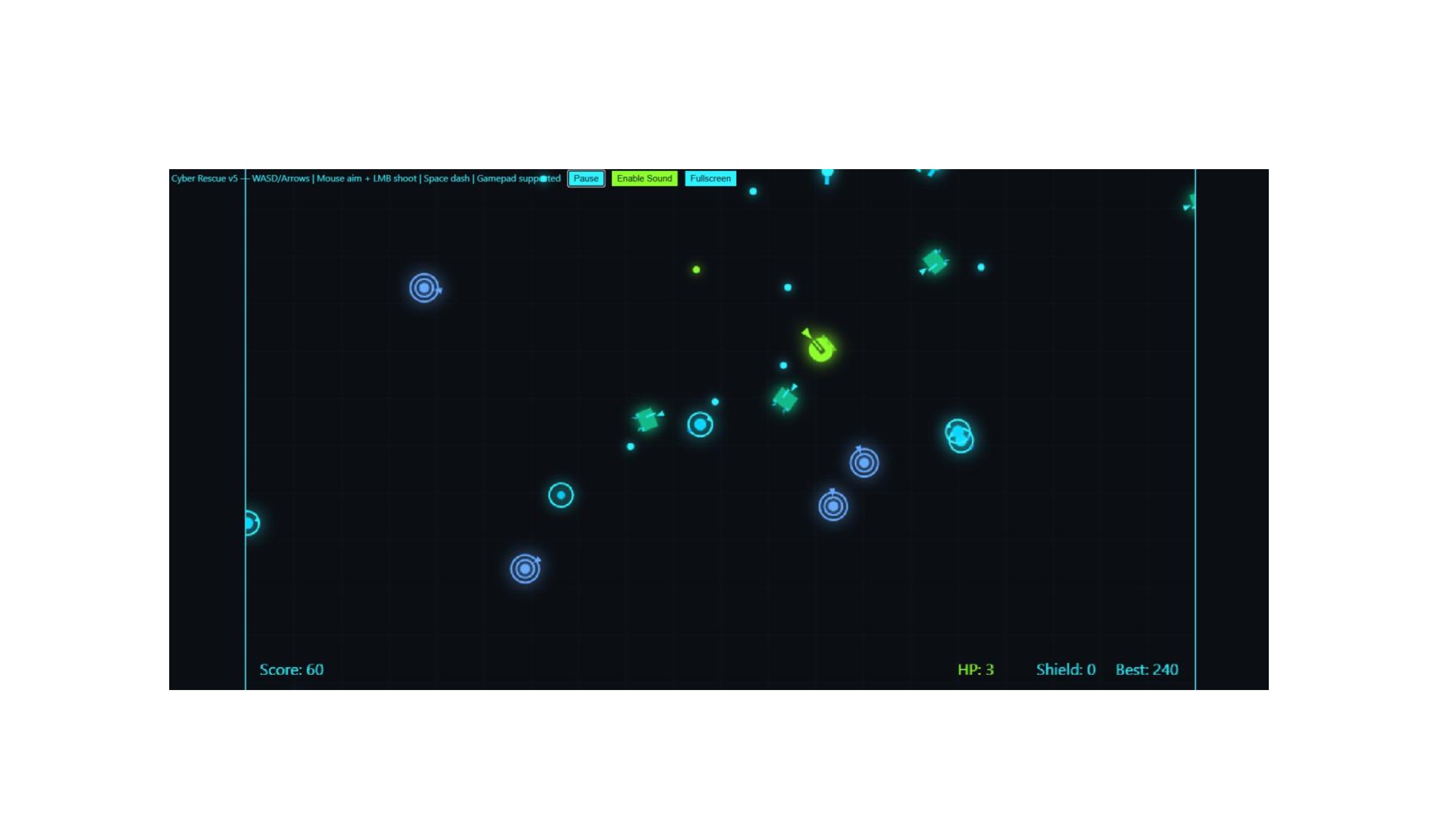 Cyber Rescue is a fast dual conrol HTML5 arena shooter